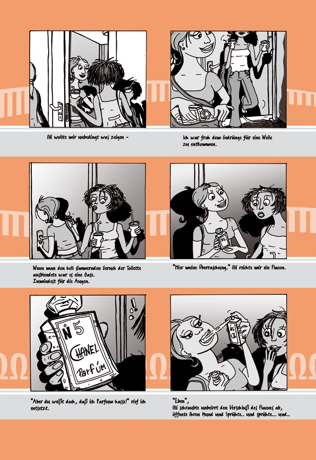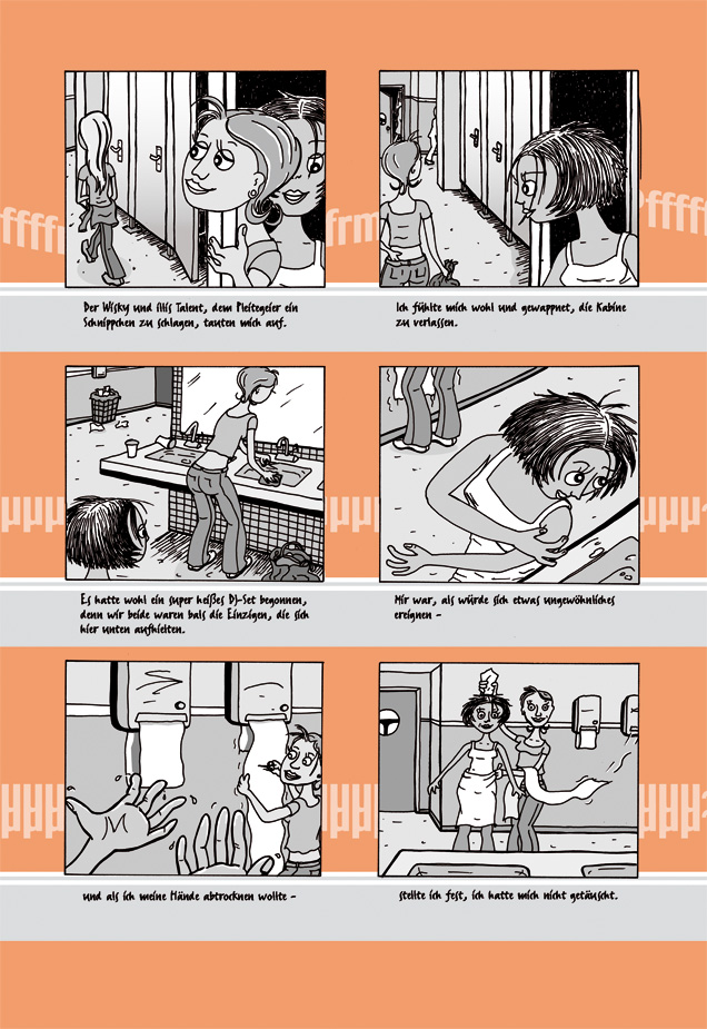 DIE KURZGESCHICHTE "DISCOGIRLS" ERSCHIEN 2007 IN PANIK ELEKRTO NR. 5, SCHWARZER TURM COMIX, ZUM COMICFEST IN MÜNCHEN.